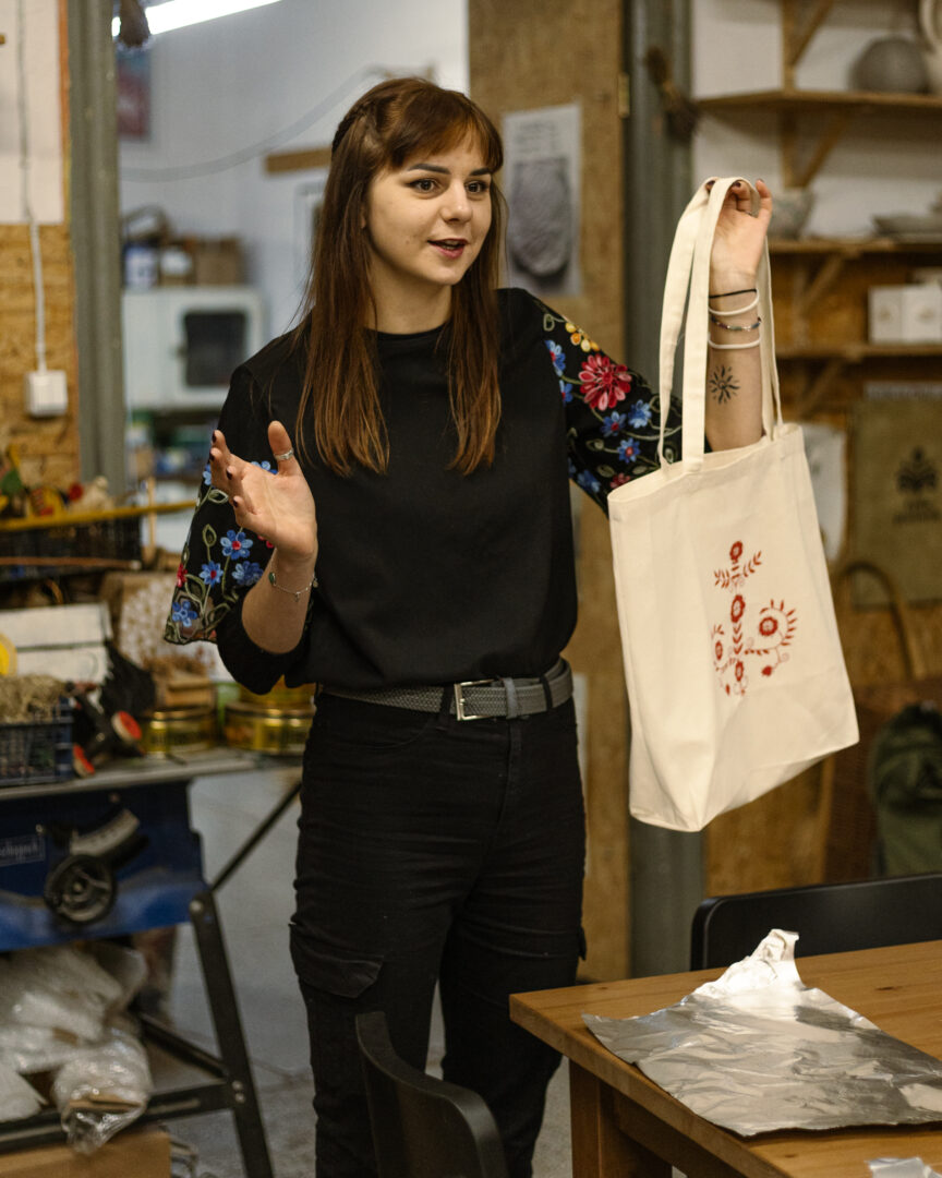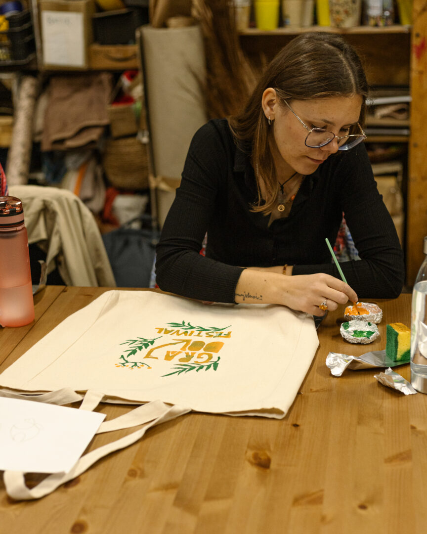 Yuliia Beretska poprowadziła warsztaty malowania ubrań i toreb – każdy mógł stworzyć swój własny, niepowtarzalny grajdołowy (i nie tylko!) gadżet.